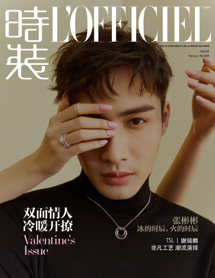 今天时尚杂志《时装 L'OFFICIEL》发布2月刊“情人节刊”,封面人物张彬彬 的身体里,有两个看雪的人。一个极清冷,像古龙的侠客,天地孤寒,弯针钓雪;另一个极温暖,心里有火,桌上有酒有菜,品人间滋味。于是他身上便有两种时辰:冰的时辰,火的时辰。他们时常在角色里相逢,又各自分开,一个钓雪归来,一个散酒出去。