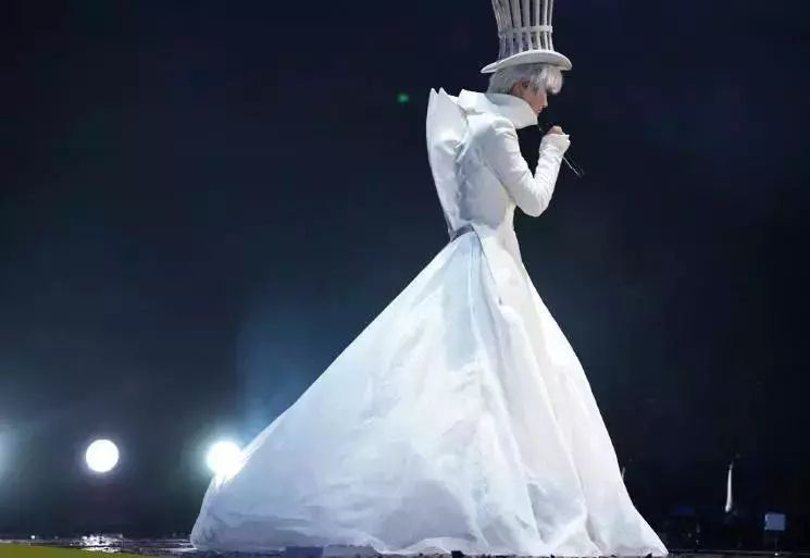 最惊艳的还是化身成为“冰雪皇后”的春春,白色高顶礼帽、白发、白色妆容配上一袭拖地白色婚纱长裙,展现了春春华丽柔美的一面。这次的尝试无疑是成功的,这场演唱会,刷新了大众对春春的认识,大家对她演唱会造型也越发期待了。