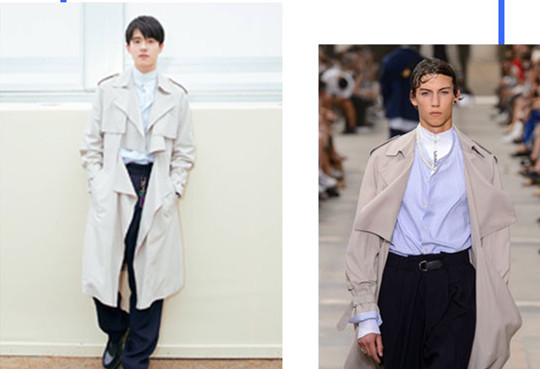 刘昊然烟管领衬衫搭配长款风衣外套, 随性间不失优雅。