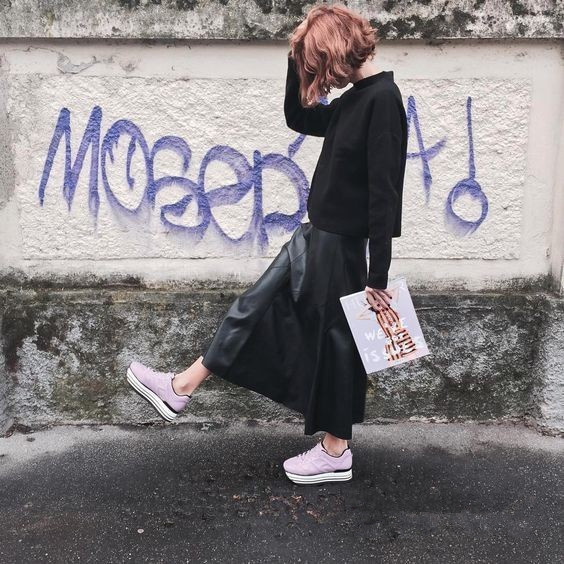 裙子的柔情厚底鞋同样能驾驭。无论是用卫衣制造下半身失踪,连衣裙的妩媚还是半裙的俏皮,厚底鞋都搭配无压力。