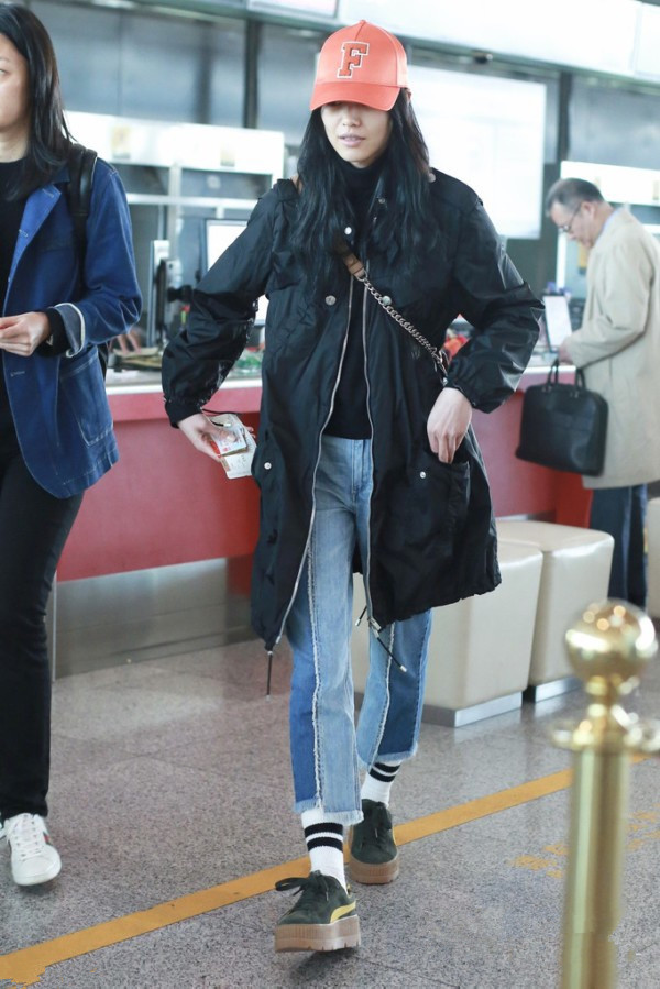 大表姐刘雯一贯的轻松随意,本来就很高的她搭配了一双底比较薄的款式。