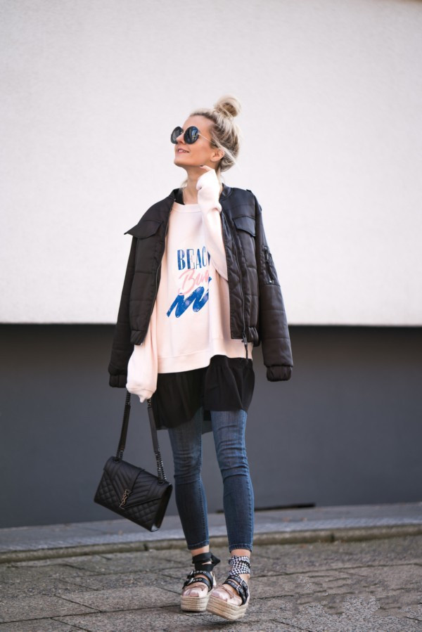 宇博Chiara Ferragni在去年的Puma x Fenty大秀上,模特一身oversized脏粉色宽大卫衣内搭吊带裙,搭配米白色厚底鞋,性感还不失动感,Oversized这种宽大版型最应该穿的高一点,选择运动厚底鞋让整体的风格很统一。