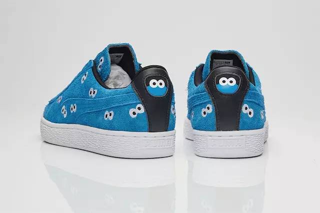 另外,PUMA 还找来了芝麻街合作推出联名系列。该系列共有 Cookie Monster 的招牌蓝色与 Elmo 专属的红色,都采用了麂皮鞋面设计,还挺可爱的。