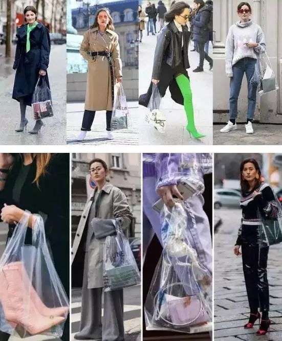 现在,不仅各大品牌推出PVC透明塑料袋,甚至还照搬购物袋、垃圾袋的样式,再冠以“时尚”的卖点标上高价。