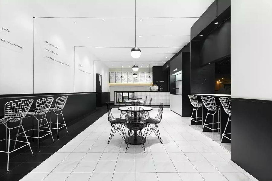 我们从时装设计大师对黑与白及点线面的偏爱中获取灵感,打造先锋、极简、有格调,同时又不失趣味的餐饮空间。