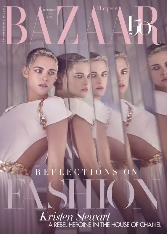Kristen Stewart的英国时尚芭莎2017年9月刊封面上,使用了镜子。