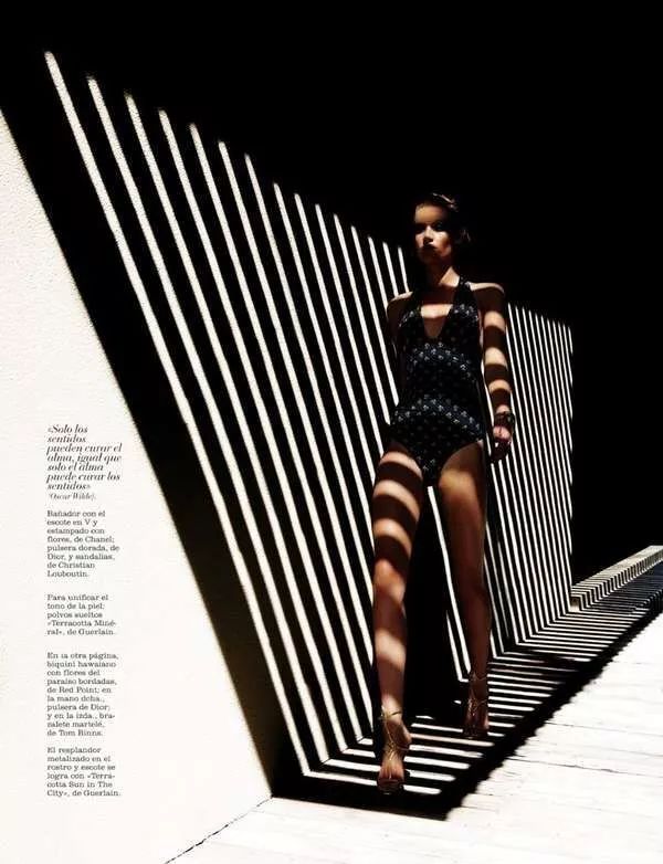 摄影就是光与影的艺术,“影子”这个看得见摸不着的道具给时尚大片中增添了许多变幻莫测的趣味。