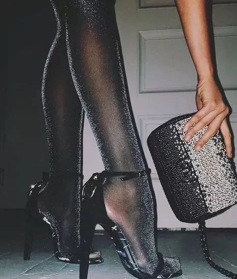此外,闪亮材质的丝袜则多出现在夜晚主题的拍摄中。闪光灯下,这种随着灯光闪烁的丝袜,可谓是70年代studio 54风格大片最切题的的道具之一,也自然是烘托性感氛围必不可少的道具。