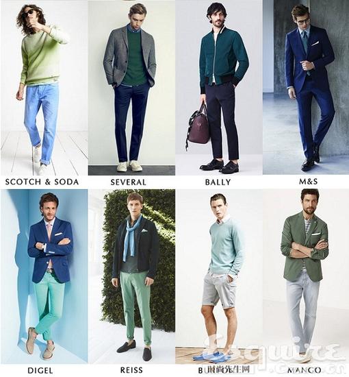 TIPS:出如今春夏日节的蓝绿色主张色彩清新清透,应制止大面积的玄色带来克制;想最近说灰色和白色是均衡团体造型的首选色彩。