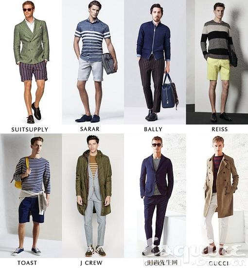 热爱观光的GUCCI在2015早春接纳很多帆海气势派头的计划,水师造型接纳大号条纹针织衫以及种种版型的派克大衣,亮色系搭配打造养眼形象。J CREW连续一向的休闲轻奢,太妃糖条纹T恤搭配洋装和派克大衣,经典与时髦的碰撞恰到利益,平底活动鞋为之平添休闲安宁感。SUITSUPPLY走混搭门路,双排扣夹克最是低调慎重,但是下半身搭配热情条纹的百慕达短裤,统统不调和的元素搭配起来倒是好玩顺眼的,这便是肆无顾忌地年轻资本。REISS则用针织条纹毛衣和亮黄色窄身西装短裤报告你,商务咖优雅有型但又不显得造作无聊。
