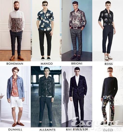 比起前几季光辉灿烂热烈的眼球攻势,本季印花在色彩和明度上都越发温柔,ALLSAINS、RIVER ISLAND用同色系暗纹印花抹去了色彩带来的嘻皮笑脸,同时保存了漂亮的风雅度;GUCCI极简休闲的宽松毛衣与印花休闲裤搭配出整齐大方的洁净书生型;DUNHILL则用简朴到极致的衬衫短裤烘托一抹印花亮色证明根本款无需过多装饰足以清新迷人;BRIONI将植物印花混搭格纹,中性的蓝调风带点花骚情调。富厚的计划理念添补了男装印花计划的清闲,给本季衣柜和搭配带来更富厚更前卫的时尚理念。