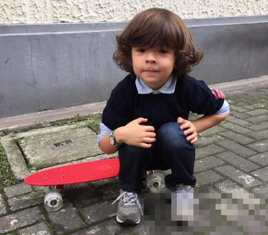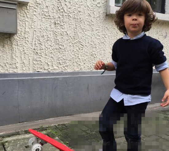 吕燕儿子玩滑板车。