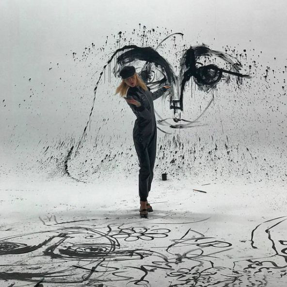 拿着画笔在镜头前随性作画的萨沙,就像13年前她初登T台时一样,美地如精灵般美好。