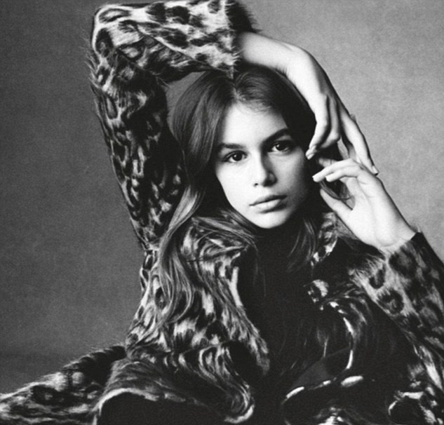 Kaia Gerber 就是前边提到的超模辛迪·克劳馥(Cindy Crawford)的小女儿,