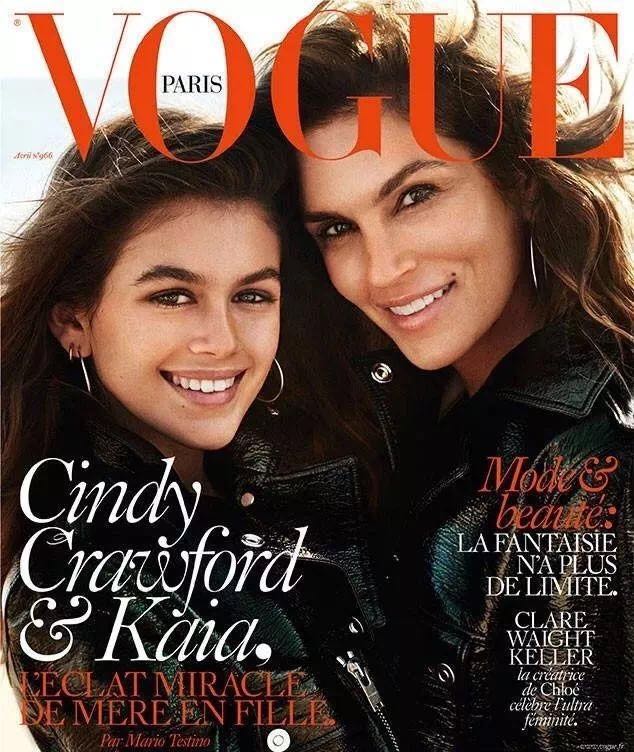 2016年,Kaia还和妈妈一同登上法版《Vogue》封面,一起为Chrome Hearts拍了一组广告大片