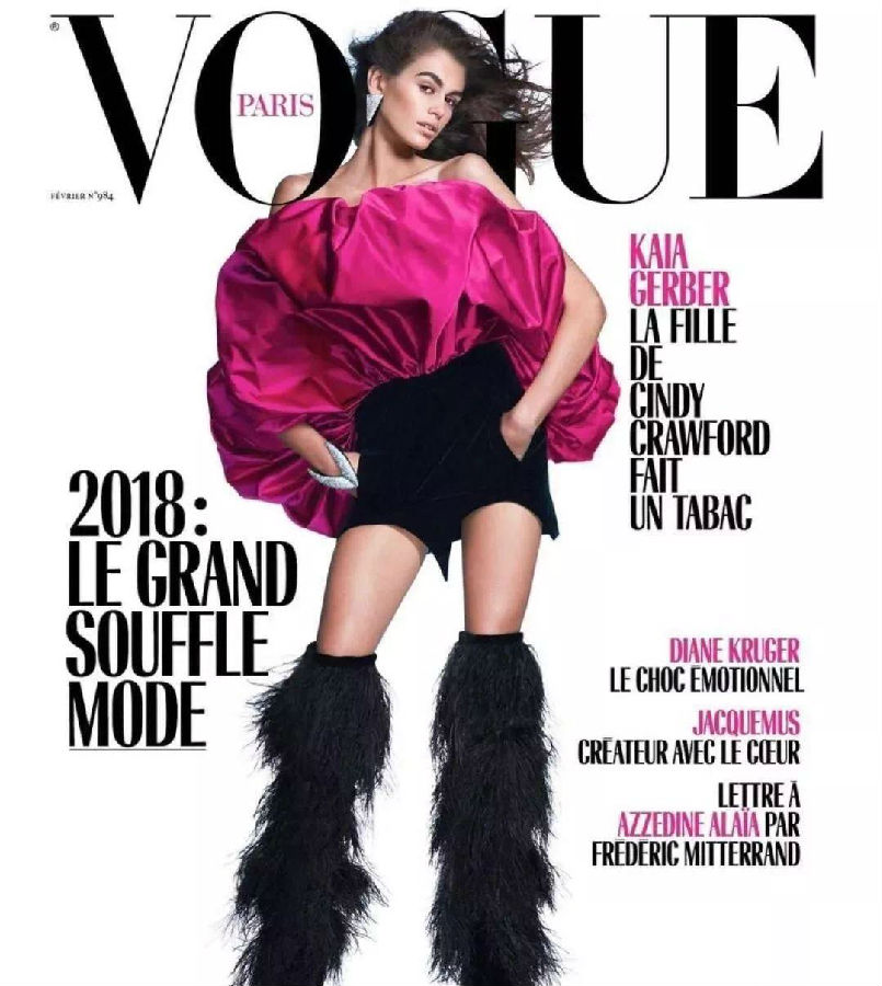 今年,Kaia又再度登上法版《Vogue》二月刊的封面,造型夸张、身段良好,完美继承了母亲的漂亮的脸蛋,和逆天的美腿,相信不久就会有更令人惊艳的表现~