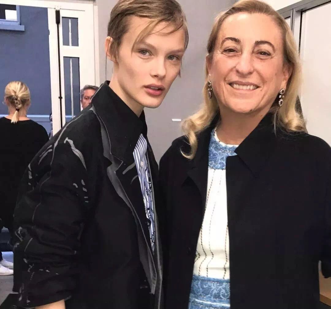为啥?因为同样年仅18的她出道既巅峰,16年刚被签成正式模特时,就得到时尚教母Miuccia Prada的发掘,一举成名~