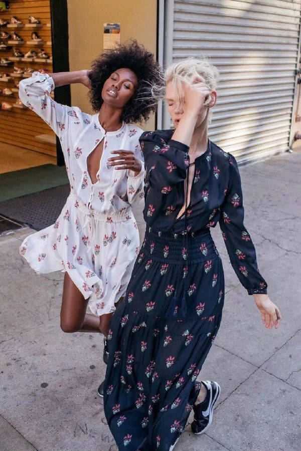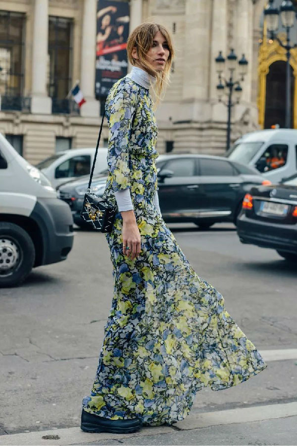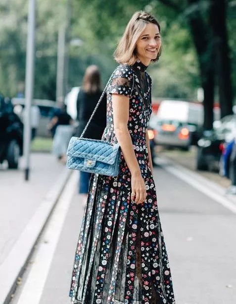 提到碎花很多小姐姐会想到又仙又美的one piece,切莫贪心,没有Tiana的颜值 头身和气场,全身碎花连衣长裙 我们还是不要尝试的为好,衣服上碎花的颜色越少为妙。
