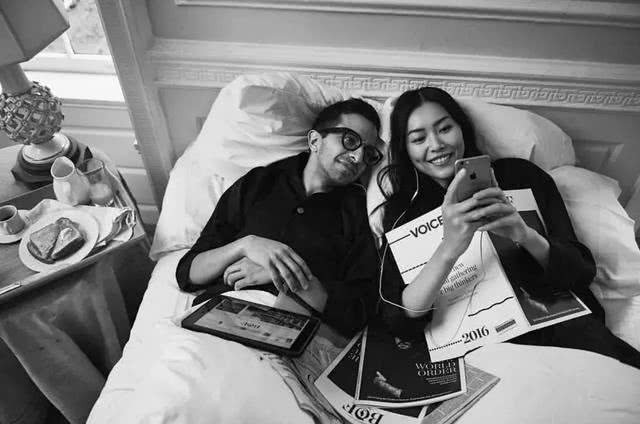 还和著名时装评论媒体BOF的创始人Imran拍过“床照”↓