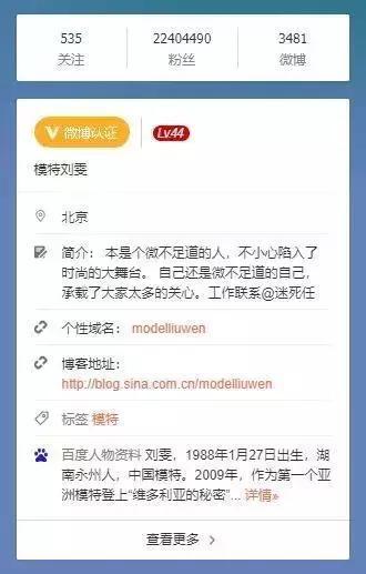 很多时候我们都会称刘雯为“明星”,但围观下她微博的备注吧,这么多年依旧是简简单单四个字——“模特刘雯”
