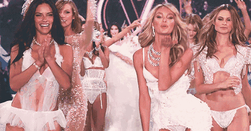 超模们拥有着长腿、美胸和自信的笑容。