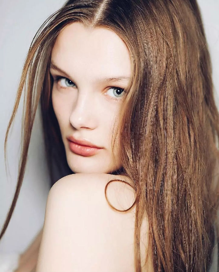长发的她温柔知性,削弱了方脸带来的凌厉感,浅到几乎没有的眉毛,素颜出镜,粉嫩的嘴唇娇艳欲滴,蓝色的瞳孔里仿佛藏着星辰大海,小编简直要被这张图的美貌迷晕了!