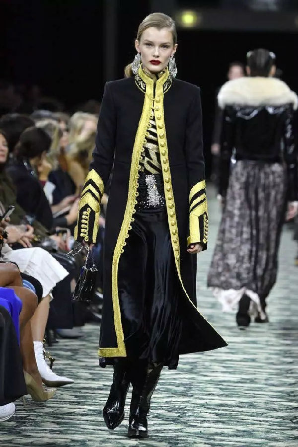 最让人惊艳的是Paco Rabanne Fall 2019这场充满力量感和自信的造型,帅气的及踝大衣搭配漆皮高筒靴,丝绸长裙为整个look增添了灵动感,台步稳健,好似古欧洲的女公爵,最出彩的就是这个耳环了,在帅气的基础上多了女性的柔美,也只有Kris Grikaite这种素净清冽的气质和冷峻疏离的脸庞才能将这个造型演绎到极致。