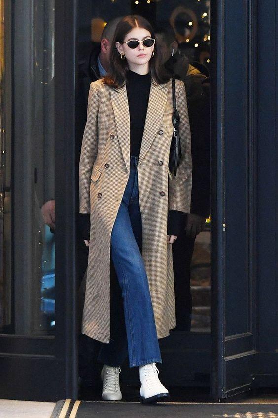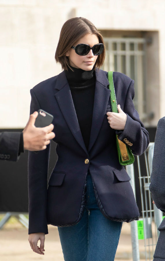 大衣是超模们出街展现气场的最佳搭档呢,选择黑色的皮质大衣会给人拉风又飒气的感觉,敞开着穿走动起来更是给你满满的气场呢。凯雅.杰柏内里搭配的是一款白色印花衬衫在飒气中展现小小的法式女人味。搭配蓝色水洗牛仔裤让整个搭配的色调显得更年轻有活力感,脚踩一双粗跟方头鞋就很有气质了哦。