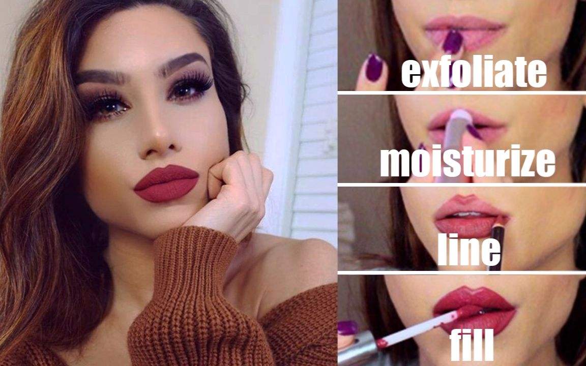 2.用唇线笔的高光笔头在唇峰进行描绘。
