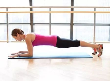 俯卧,双肘弯曲支撑地面,肩膀和关节垂直地面,双脚尖踩地,身体躯干部伸直,头肩跨脚踝保持平直,收紧腹部,均匀呼吸。