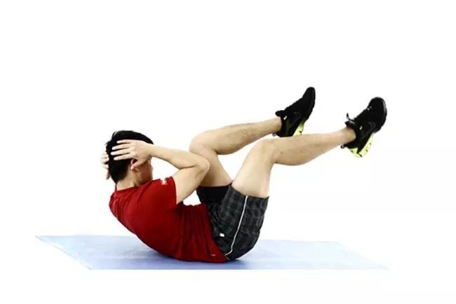 这个动作就像做仰卧起坐,但做功距离短一些,一组20个,3-4组。