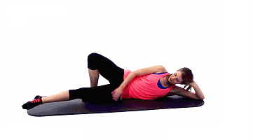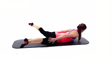 手肘撑地侧躺在地上,一条腿弯曲,另一条腿绷直脚尖上下运动~