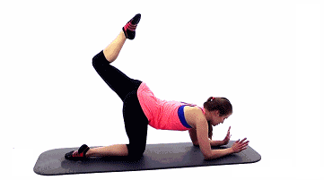 手臂和膝盖撑地,一条腿撑地的同时另一条向上弯曲尽量延伸~