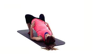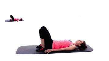 双腿弯曲平躺在地面上,靠腹部力量引导臀部和胸部向上,注意调整好呼吸~