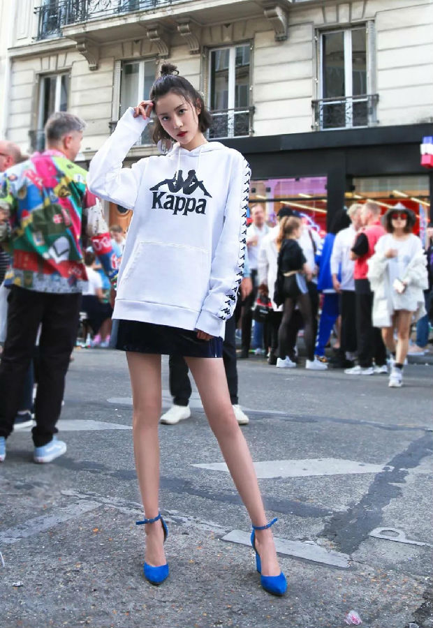 李溪芮身穿一件卫衣,下身搭配一条黑色短裤,脚踩蓝色高跟鞋,秀出纤细笔直的大长腿。