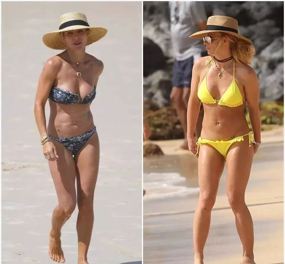 来看女明星最近几个月的沙滩照,锤嫂Elsa Pataky和布布戴着草帽……