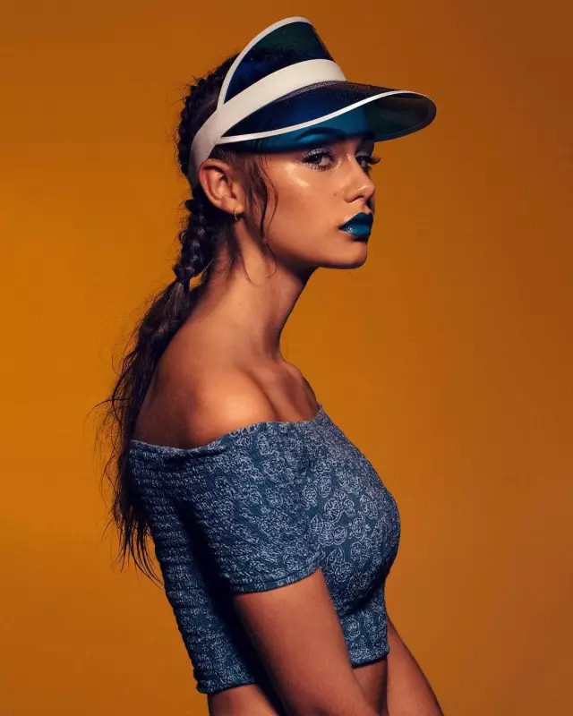 法国少女风品牌Cacharel今年春夏目录里,金发的亚裔脸少女也戴着一顶牛仔蓝visor。