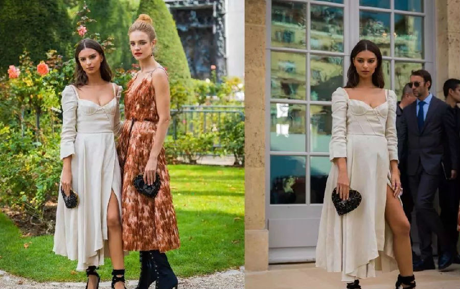 侧面开衩设计的连衣裙,露出若隐若现的腿部线条,视觉上感觉最纤细。白色侧开叉的连衣裙+黑色绑带高跟鞋的基础搭配,最适合低调优雅的小仙女~