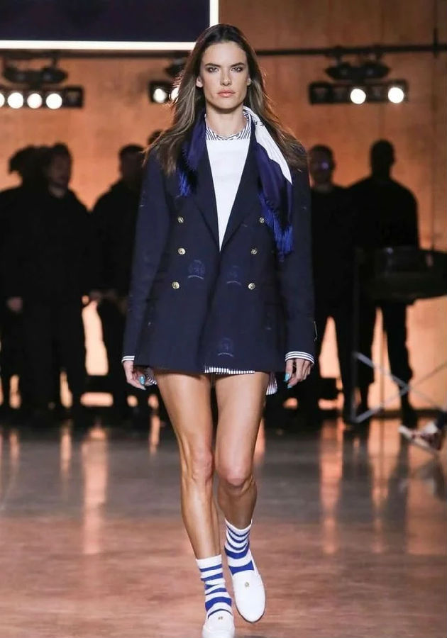 今年为Tommy Hilfiger举办2020秋冬大秀走秀时,她身穿oversized西装大秀美腿,个性logo印花以及丝巾的搭配都很时髦,说起来踩着平底鞋走秀的AA,身材比例很虐心,但是整个人的自信和气场却很加分,尤其是美艳的颜值,39岁也没有老态。