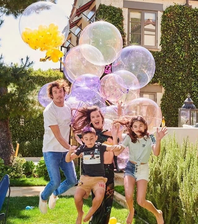 如今的AA一个人带着两个娃,又找了新男友依旧相当甜蜜,一家四口庆祝自己39岁生日,梦幻十足的气球作背景实在太梦幻了。
