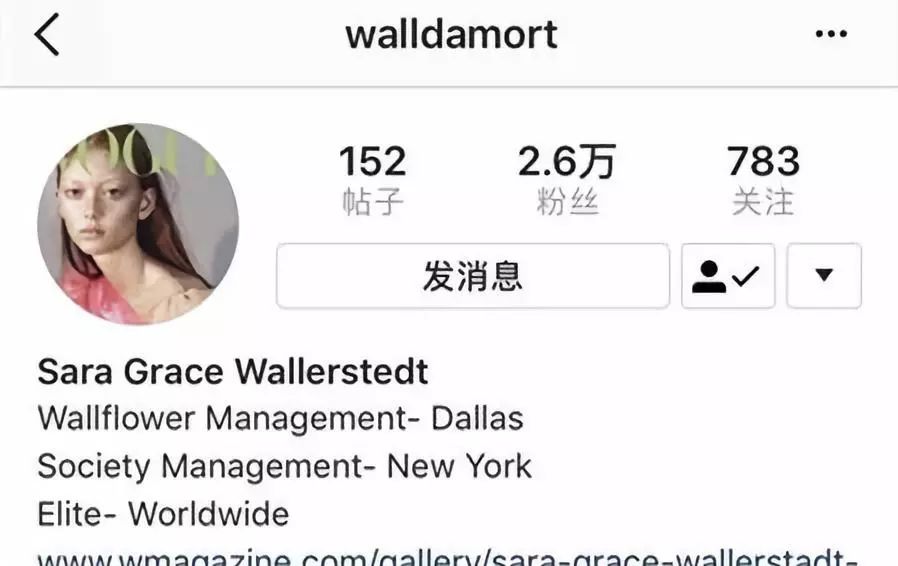 Sara Grace Wallerstedt目前在INS上的粉丝的还比较少,但在Prada,Calvin Klein等大牌秀场能经常看到她的身影。