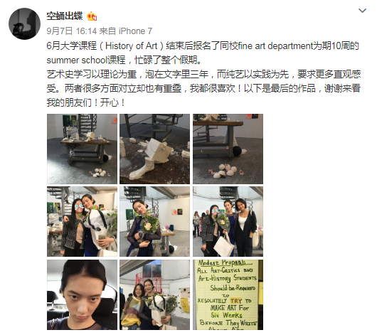 除了继续沉浸在知识的海洋,Cici还喜欢去看各种感兴趣的艺术展,进行艺术创作。