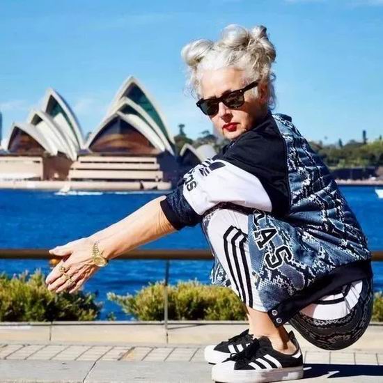 她叫Sarah Jane Adams,是悉尼一个珠宝设计师,即使满头白发依然像个少女一样元气满满,当20来岁的我们整天穿着单调的黑白灰抱怨着自己“老了”“长皱纹”时63岁的Sarah正穿着漂亮裙子在环游世界的路上,牛仔夹克配上红唇银发。
