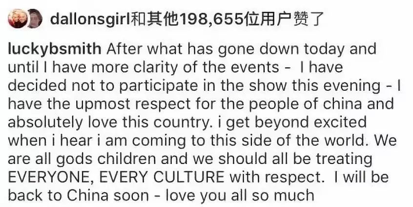 当天,在D&G活动取消前,他就发声不会出席大秀,并写道,每种文化都应该得到尊重。