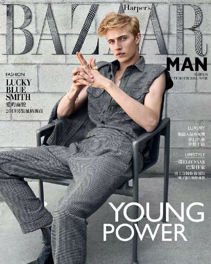 一头随性的银发,明亮的绿色双眸,立体而精致的五官,189cm的身高,而且98年出生的Lucky Blue Smith,如今也不过20岁。