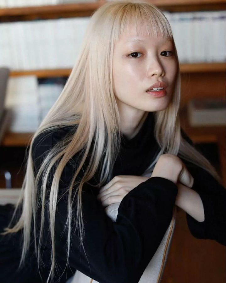 而就在最近,这个在时尚圈、超模界辨识度很高的粉毛模特利献灵突然变成了金发小精灵,头发、眉毛也一起漂成了浅浅的黄色。