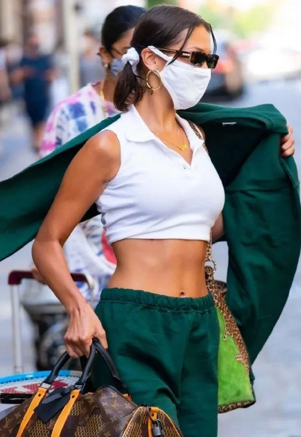 Bella的这套出街穿搭简直太飒了,将她惹火的身材很好的得到了展示。给大家很好的示范了美式运动风的时髦感。这一天上衣她选择的是一件白色的polo衫,经典的白色搭配,她小麦色的肌肤看起来更显时髦。美式复古的领口可以很好的凸显出脖颈线条。紧身的版型设计又很好的展现出了身材比例,尤其是露腰的设计,我们可以看到常年健身的她腹肌明显,这件衣服将她的小蛮腰,马甲线都很好的展现了出来,太吸引人了。
