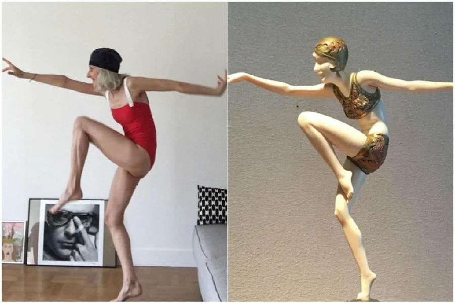Sylviane奶奶可不仅在模特和时尚上充满造诣,在模仿上更是一把好手。在她地Ins主页里,你也会有一种错觉,那就是进入到了《今夜模仿秀》地现场,与雕像地神同步让她地那种可爱感加倍提升。