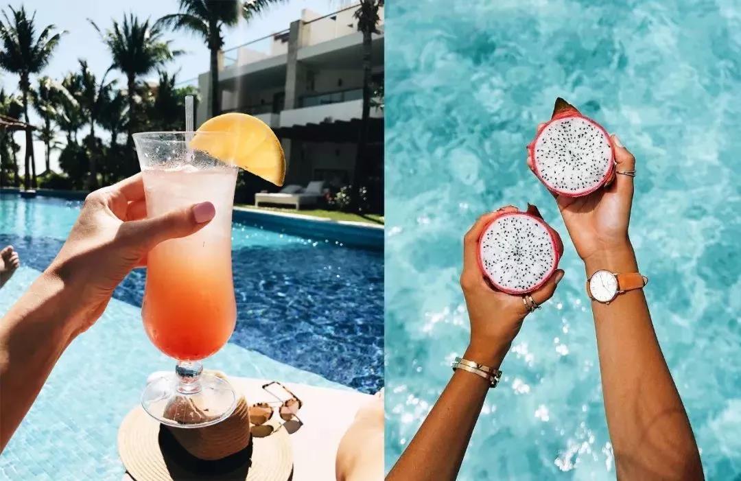 手中的果汁、水果可以单独来一张,不用露脸发朋友圈就知道你在度假!▼