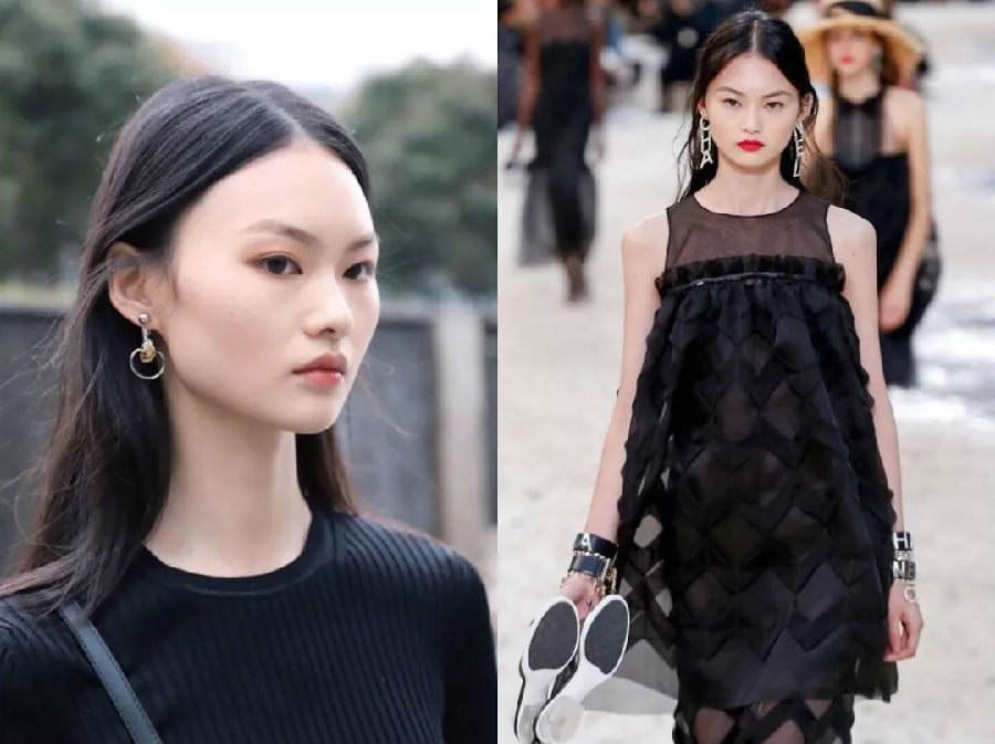 再来说贺聪,在新一代的模特中,同样占据着举足轻重的地位,23岁的她已经出席了不少大牌的时装周秀场。有着178cm的身高,也有模特特有的身材优势。